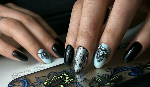Интересный и запоминающийся дизайн ногтей с фольгой можно получить, применяя несколько приемов одновременно. Это могут быть и декоративные средства в примере фольги, роспись на ногтях, наклейки-слайдеры, графические мотивы, что в совокупности позволяют добиться непревзойденного маникюра с фольгой.
