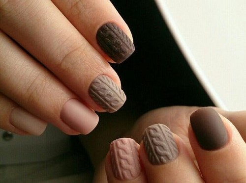 Вязаный коричневый маникюр