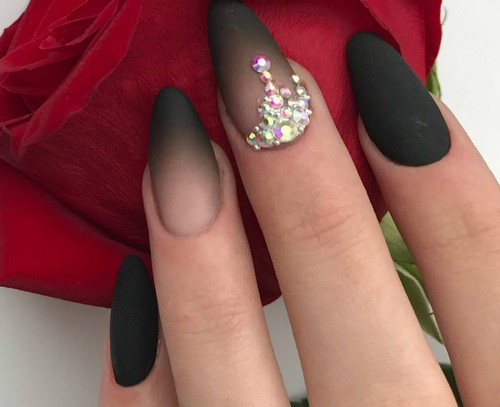 - маникюр в черных цветах;