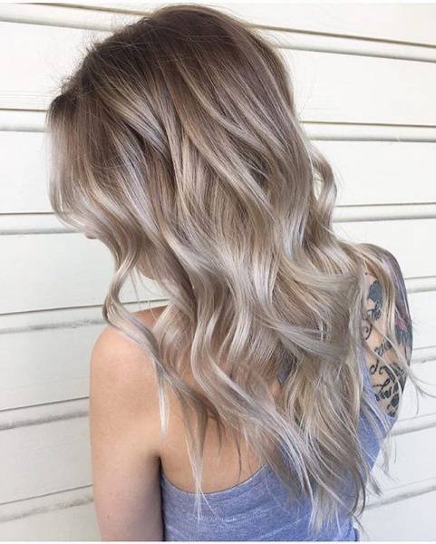 Пепельный оттенок – необычный и очень актуальный. Единственный нюанс – мелировать в такой тон сложно (проводится полное обесцвечивание волос), подходит только женщинам холодного цветотипа с серым подтоном локонов. Популярной является техника соль-перец – чередуются серые и белые пряди. Хорошо дополняют пепельные локоны платиновые и серебристые нотки.