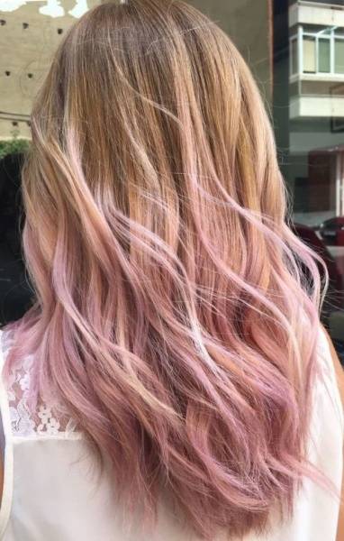Розовый цвет выбирают нежные романтичные личности. Применяется зональное тонирование – акцентируется чёлка, отдельные пряди возле лица, выполняются плавные переходы. Для светлых волос прекрасно подойдут модные клубничные, апельсиновые, пудровые тона. Сделают образ дерзким насыщенные розовые оттенки – фуксия, розовое дерево, лиловая орхидея.