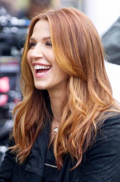 Тёмно-русые волосы с коричневым подтоном, благодаря применению рыжих акцентов, становятся яркими, выразительными. Используются медные, медовые, янтарные оттенки. Благородно и изысканно смотрятся золотистые, карамельные блики. Огромный плюс рыжего мелирования – результат держится долго, а под солнечными лучами пряди выгорают, становятся ещё эффектнее.